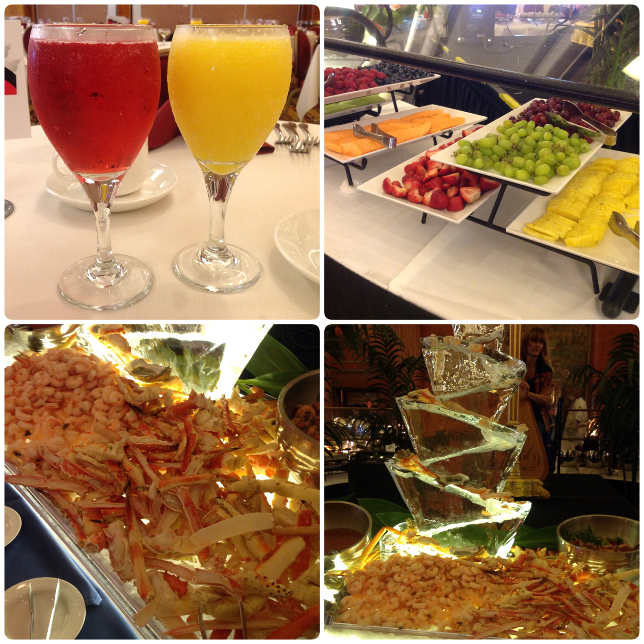 Once you get seated brunch starts with a Mimosa or Bellini that your server gets for you. Which let me say one thing about the servers. One of my biggest pet peeves about a brunch is when you are done with your plate it just sits there on the table even after you get a new one. The Queen Mary’s brunch has THE BEST servers. My dirty plates were ALWAYS gone by the time I was back with more food.