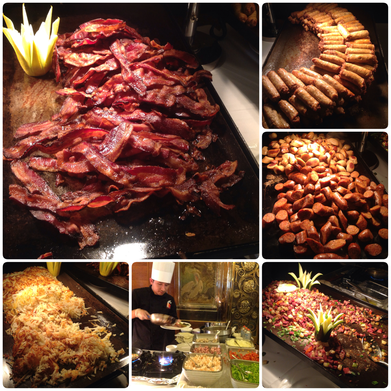 OK back to the food. There was so much to choose from! From different types of meat, to breakfast, to mexican I just couldn’t decide what to eat first. They had a omelette station which was HUGE. 2 chefs ready to make your omelette to order. They also had a waffle/pancake station which had as many toppings for your waffles and pancakes as you can think of. So I literally spent the first 10 minutes just walking around looking at everything before I decided on what to start with.
