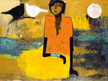 - GOLI MAHALLATI — Iranian artist Goli Mahallati’s work explores the “elemental state of the human condition.” She says her use of warm and luminescent colors and depictions of mysterious forms offer a “unified sense of energies often lacking in post-modernism. My paintings are less about thinking and more about intriguing energies from which they have arisen.