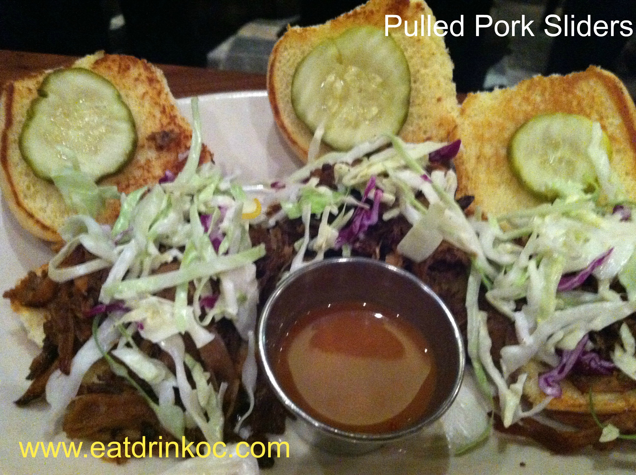 We also tried the pulled pork sliders. These fun little sandwiches are perfect to share with your party. The coleslaw and pickles were a nice touch and cooled off the spice of the sauce. I could have eaten this for my main course they were so good.