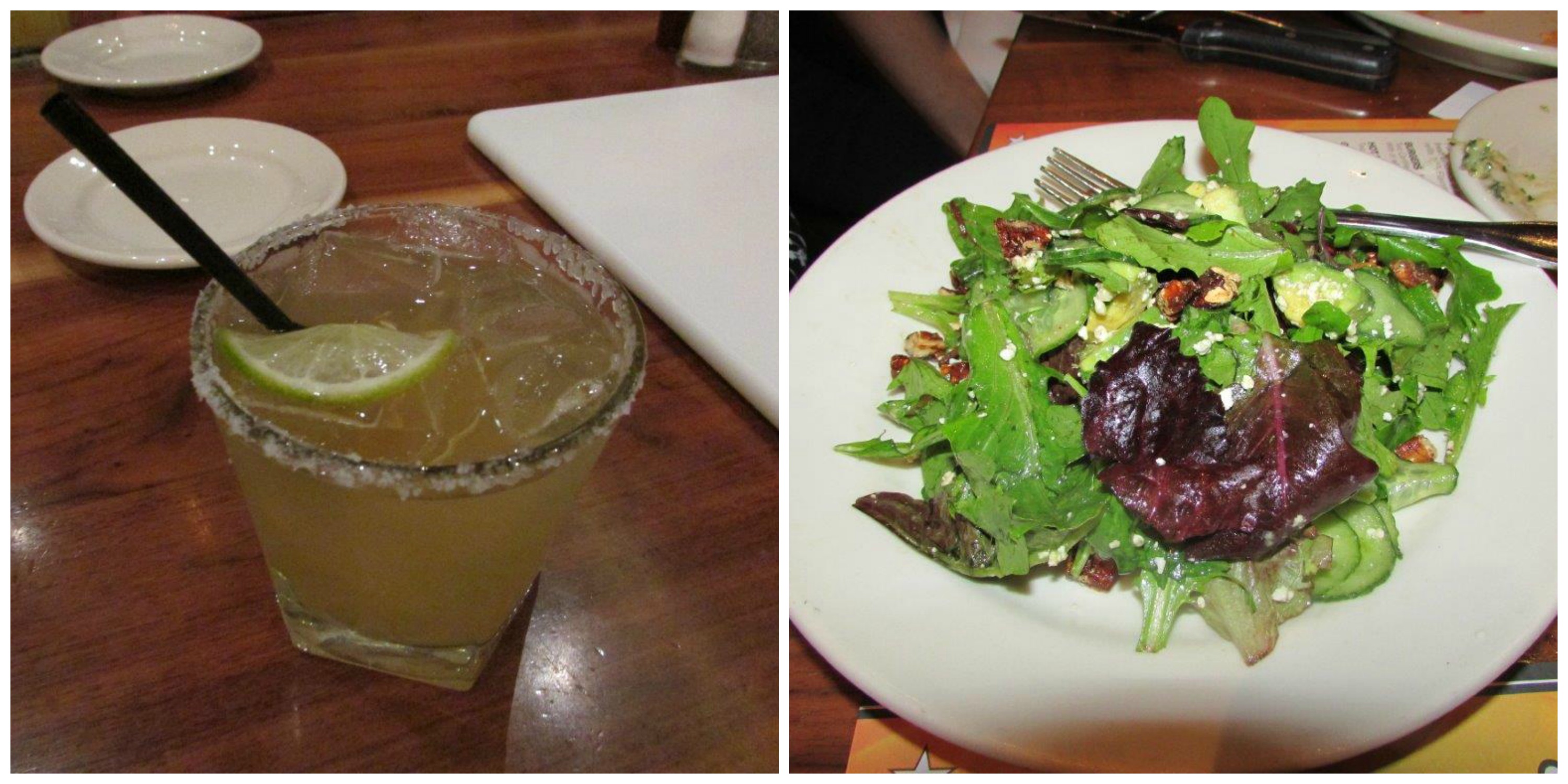 Next came our drinks, we ordered margaritas on the rocks with Grand Marnier and the Natalie Salad which had baby greens, candied pecans, gorgonzola, avocado, cucumber, and balsamic vinagrette.