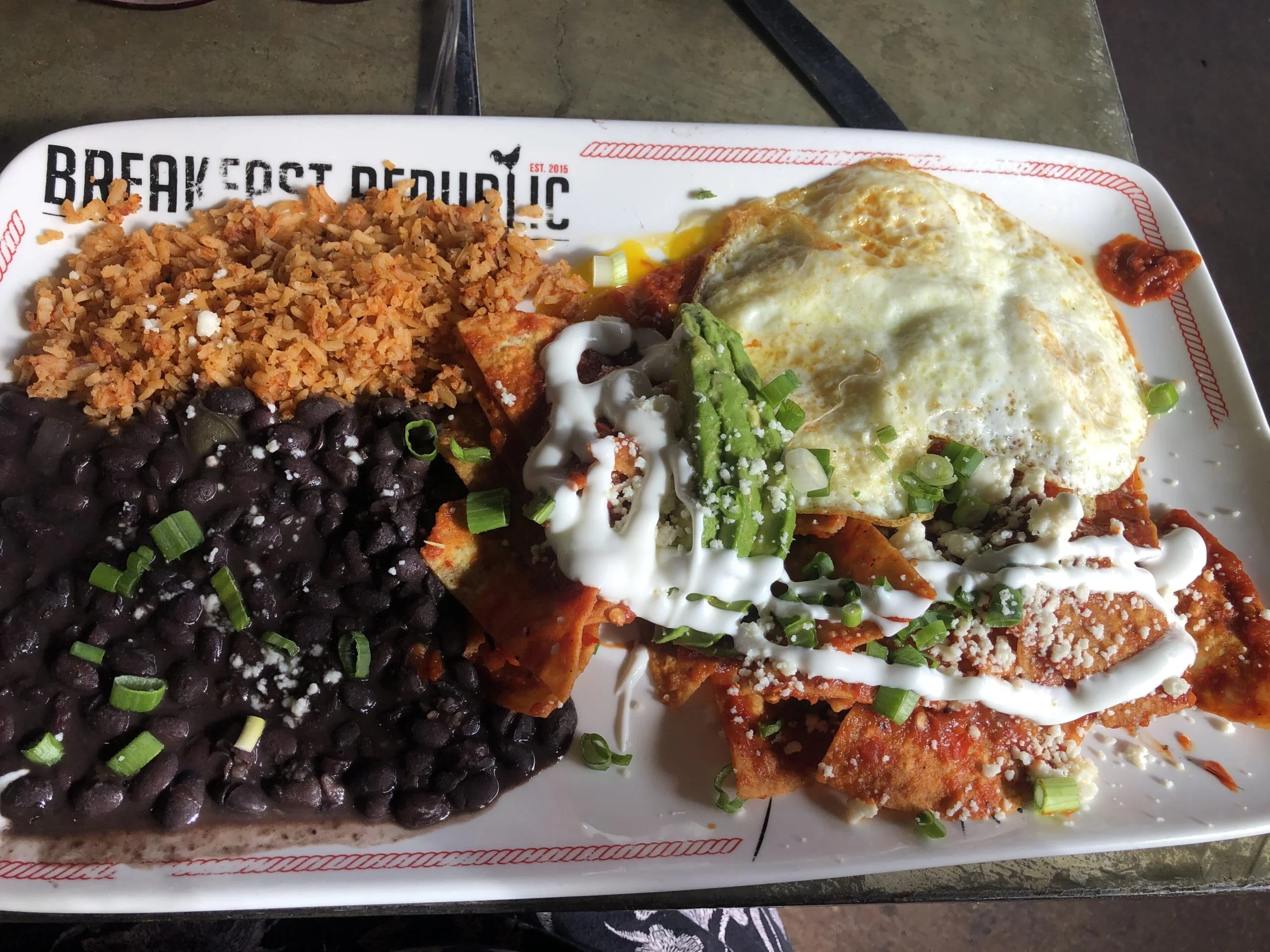 Now, onto breakfast! I decided to try the chilaquiles because I am a tortilla chip lover. It came topped with 3 eggs, red salsa, queso fresca, sour cream, black beans and mexican rice. It even had 3 perfectly ripe slices of avocado nestled in between. I would avsolutely order this again.