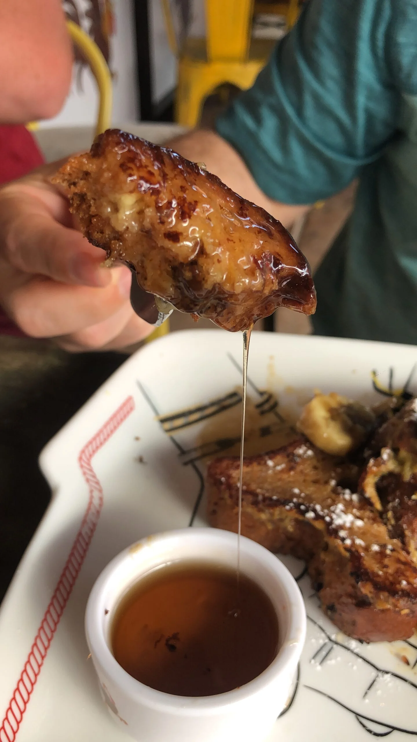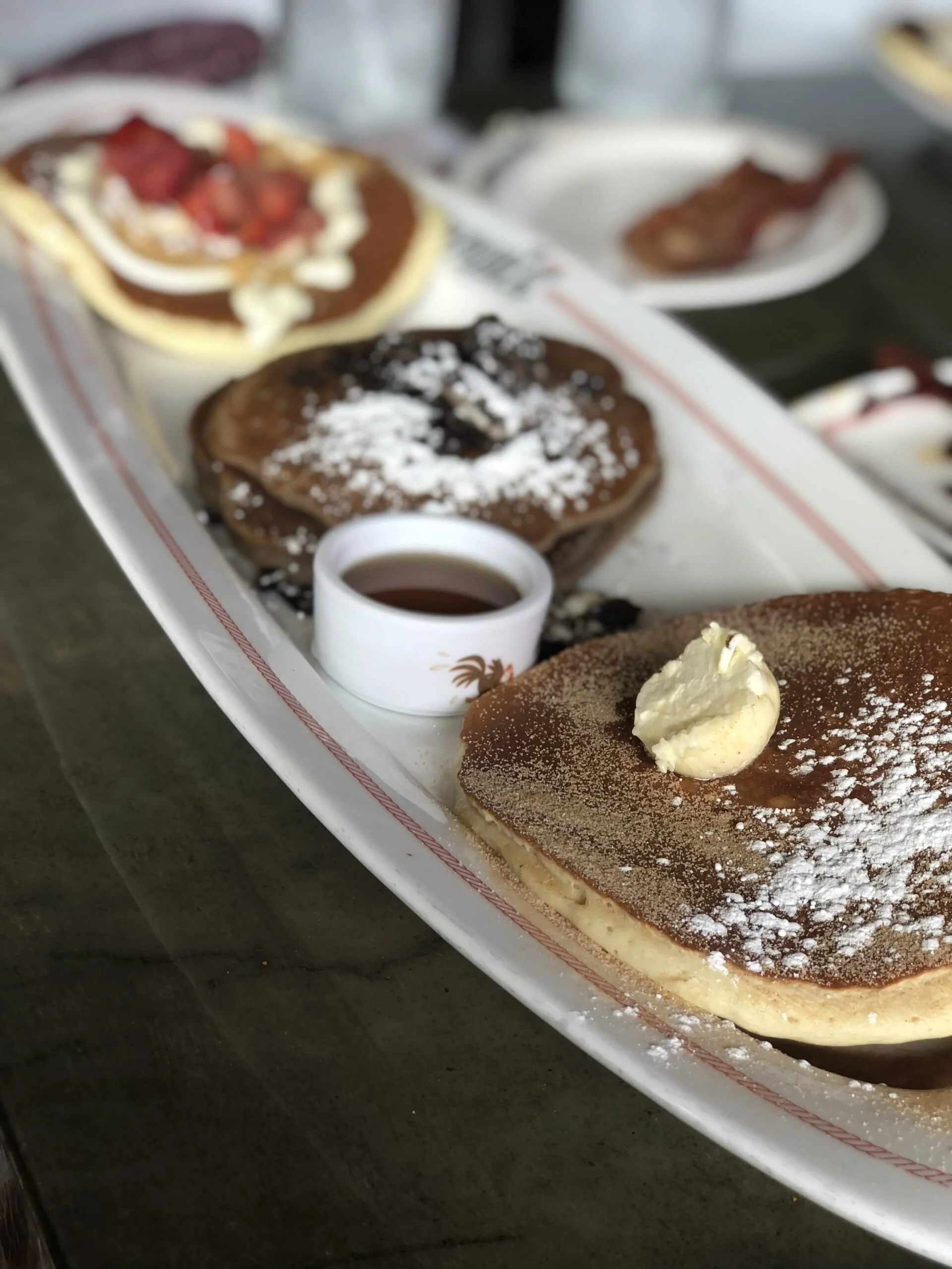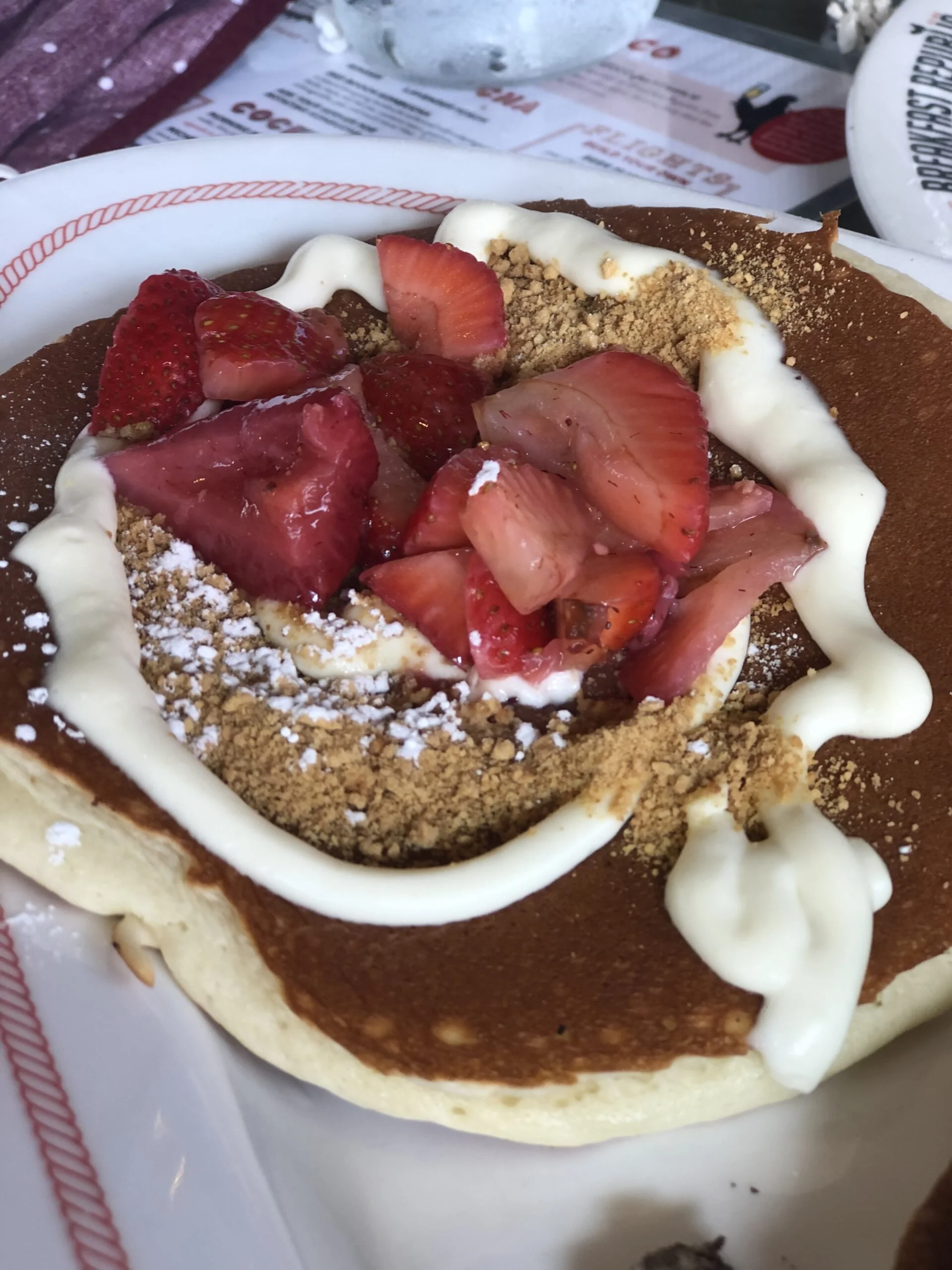 My daughter and son both enjoyed a pancake flight of 3 and each of them devoured everything on their plates. They tried strawberry cheesecake, cinnamon roll and pineapple upside down cake. The pancakes were big and fluffy and flavorful.