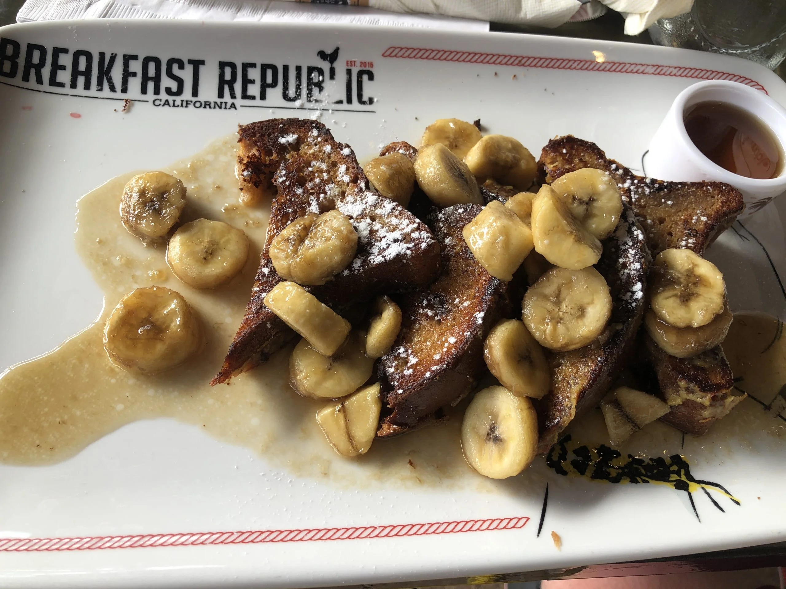 Breakfast Republic has some really fun décor/design pieces. There is a lounge area with egg chairs and tables, and cheeky sayings written across booth tables, such as “Brunch: The socially acceptable excuse for day drinking.” The liberty station location has an awesome outside patio with a view of the trolley arriving and departing. This is super fun for people watching. Of course the weather is San Diego is always great but indoor dining works great too!