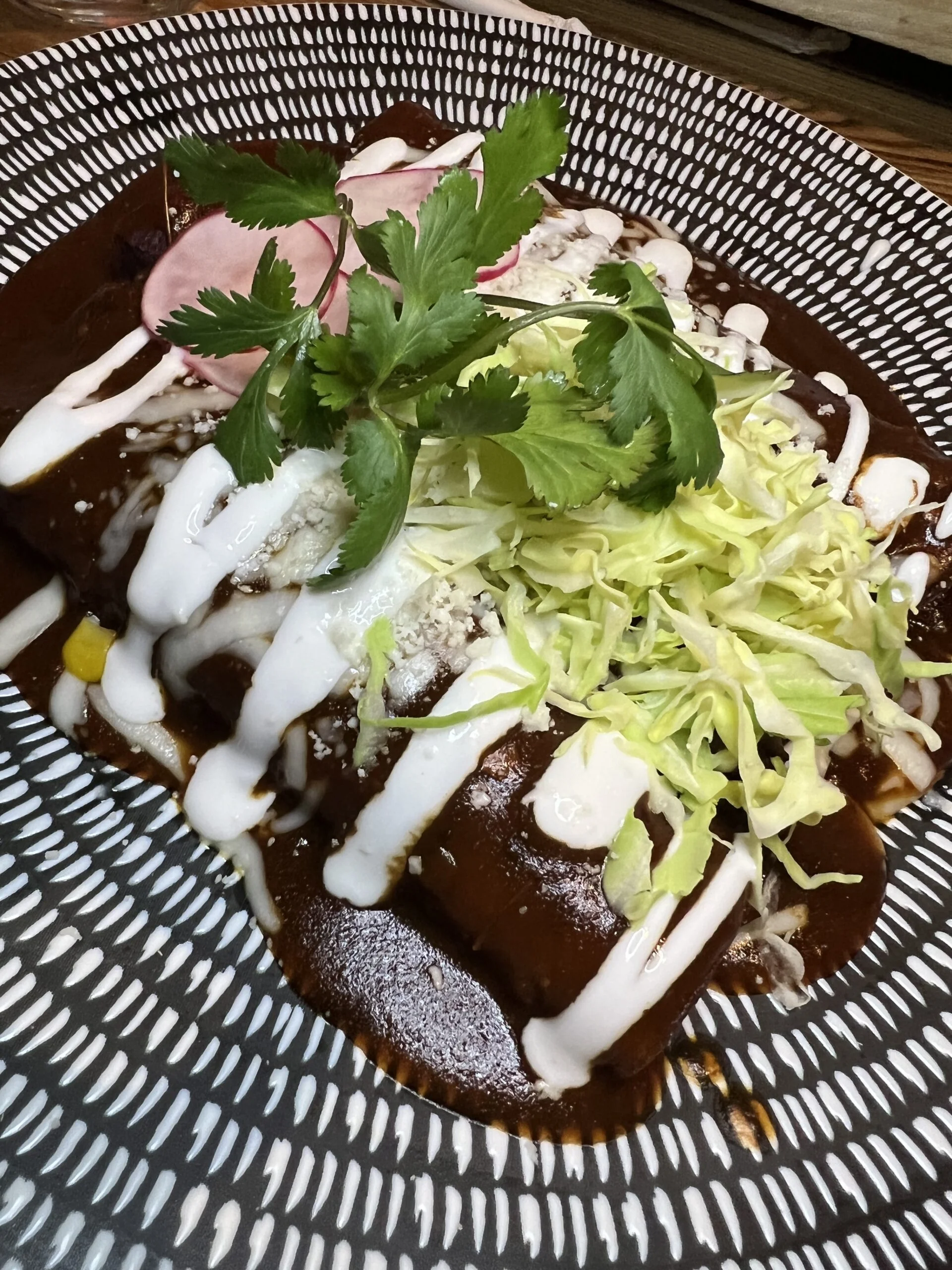 I enjoyed the Rojas chicken enchiladas. I loved how they plate it on this dynamic and beautiful plates so your food just pops! It had three marinated chicken with two-cheese blend enchiladas topped with red sauce, crema fresca, radish, queso cotija, and cilantro. Served with rice and beans. The cream sauce really gave it that extra zing.