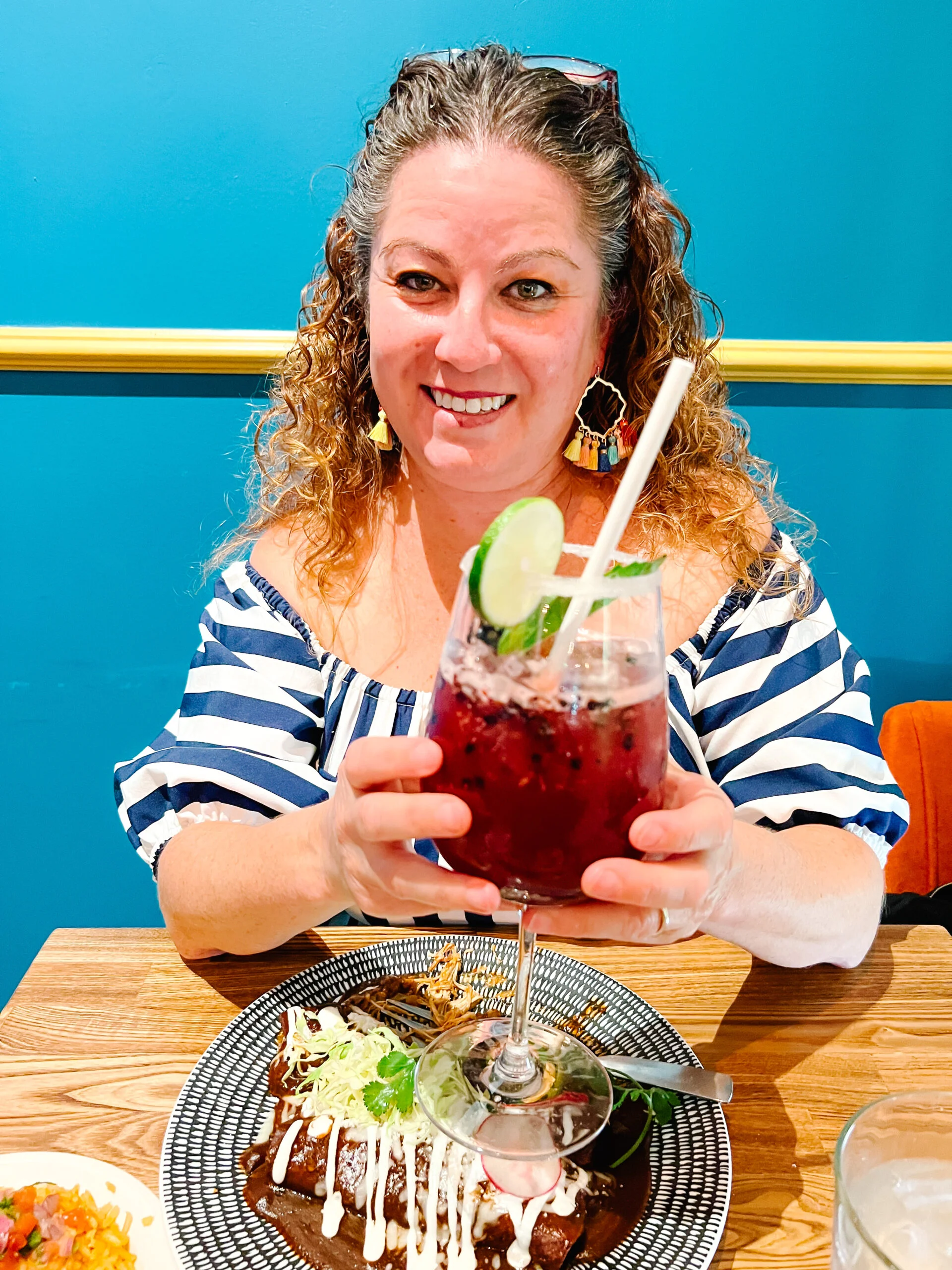 I wanted something to wash it all down with so I had a blackberry winearita this time. I loved this one. It had fresh lime juice, fresh blackberries agave nectar, aztec chocolate bitters, pomegranate, pineapple juice and agave wine. All poured in a large glass with a sugar rim, lime wheel and basil. My tastebuds were very happy.
