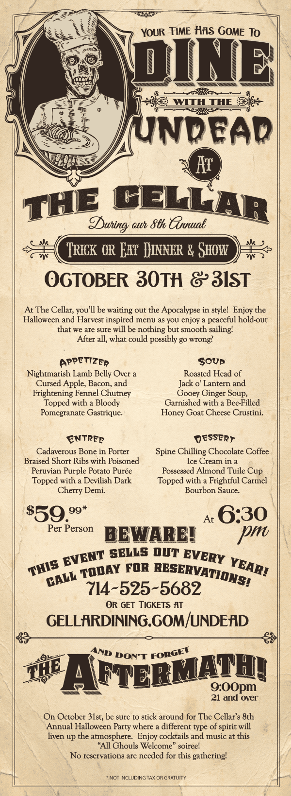 Dine with the Undead At The Cellar’s 8th Annual Trick or Eat Dinner & Show