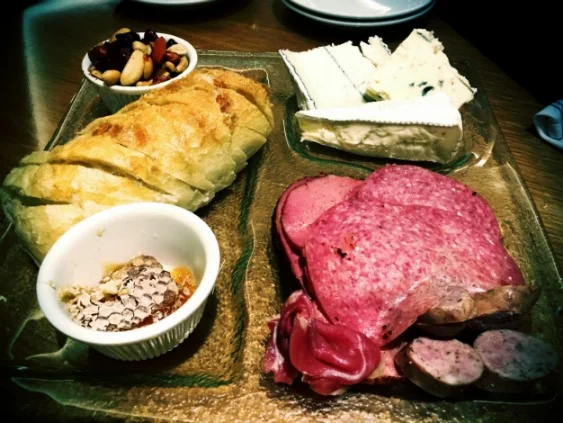 First up was a delicious Charcuterie platter with a hearty mix of cured meats, local cheeses, brie, honeycomb, nuts, and Crostini.