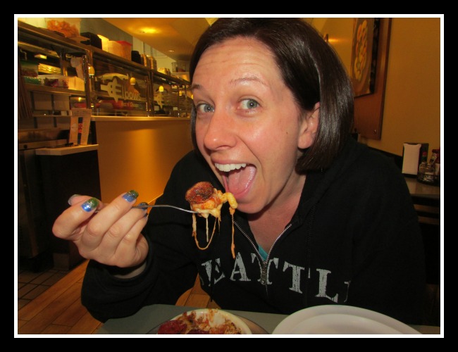 As we were eating another employee kept coming to check on us. Her name was Serena and she got us anything we wanted. It was almost like being at a sit down restaurant. She would walk the floor every so often and ask us along with the other patrons what we needed. It was fantastic. Oh and that is Keri totally enjoying the Do you want a Pizza me. 🙂
