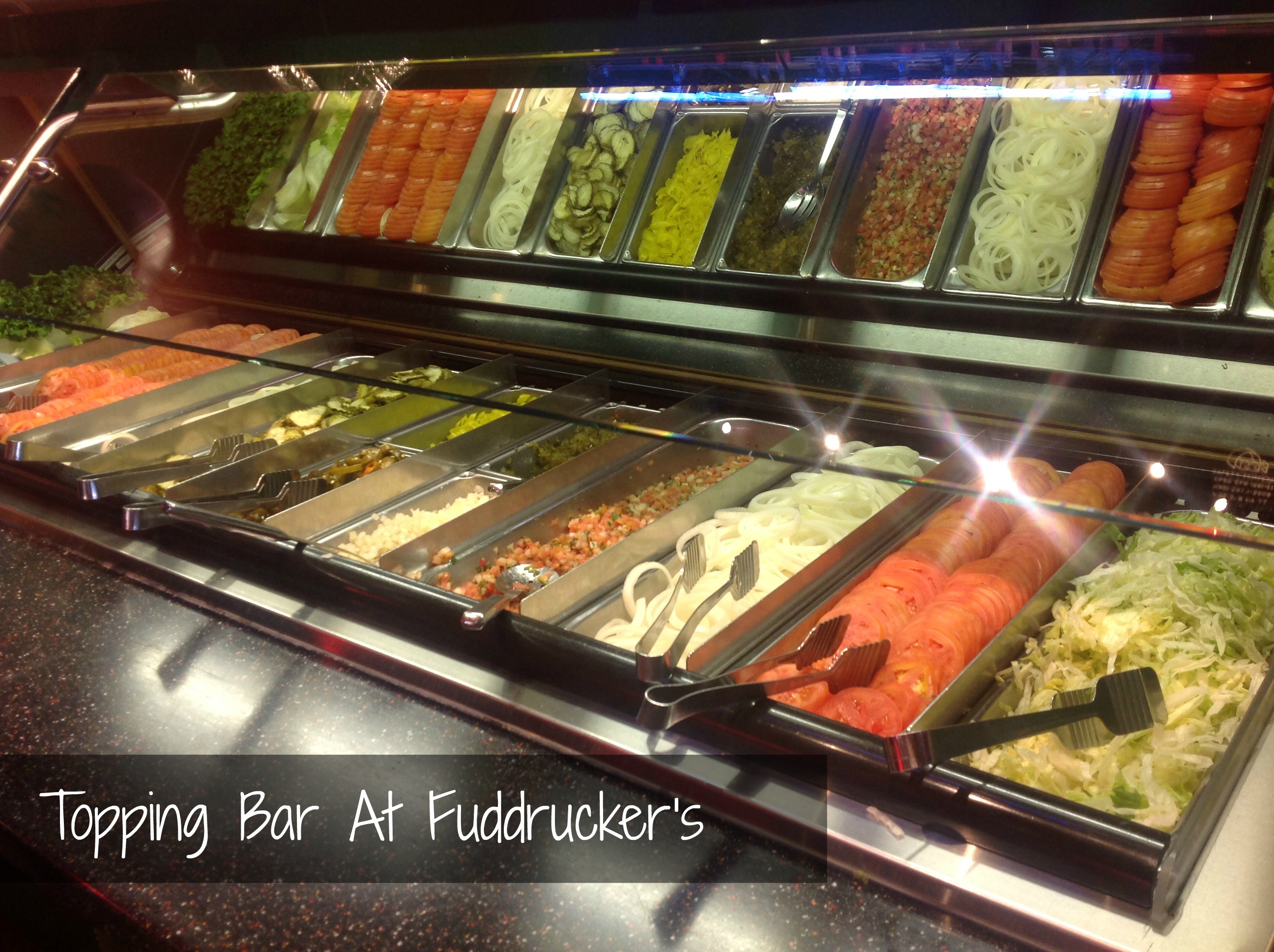 The concept of Fuddrucker’s is very simple. You order your food at the counter and then wait for them to give you your masterpiece. Their menu is full of variety . You can order regular hamburgers or you can order exotic things like elk, buffalo and wild boar. For the less adventurous you can still get a regular hamburger, chicken or a salad. Plus they have an awesome kids menu! Once they hand you your order you take it to their legendary Build Your Own market fresh produce bar. It’s stocked full of sun-ripened tomatoes, hand-leafed lettuce, sliced onions, dill pickles, pico de gallo, Fudds cheese sauce and lots of other fantastic fixins.