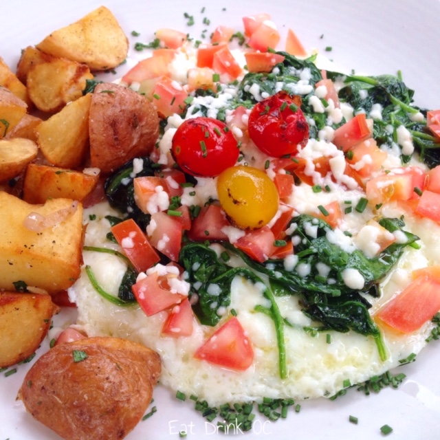 For those that want to eat a little lighter, I suggest ordering the egg white frittata with Spinach, Tomatoes, and Queso Fresco. This dish presents so beautifully and tastes great.