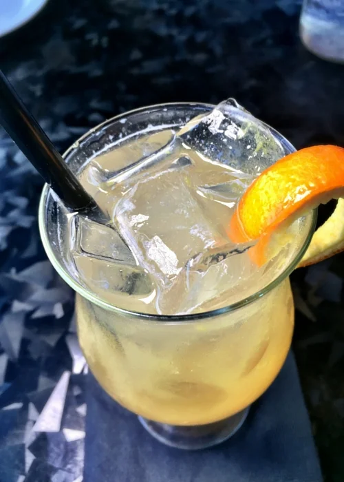 My drink had High West double rye whiskey, Grand Marnier, lemon juice, sweet and sour, and a dash of orange bitters. It was so light and flavorful.