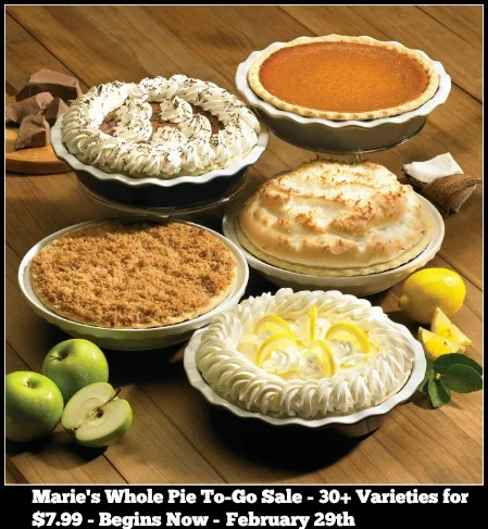 *Pie Sale excludes cheesecakes, seasonal fresh fruit pies, and promotional pies. Please visit www.mariecallenders.com for a complete listing of pies.