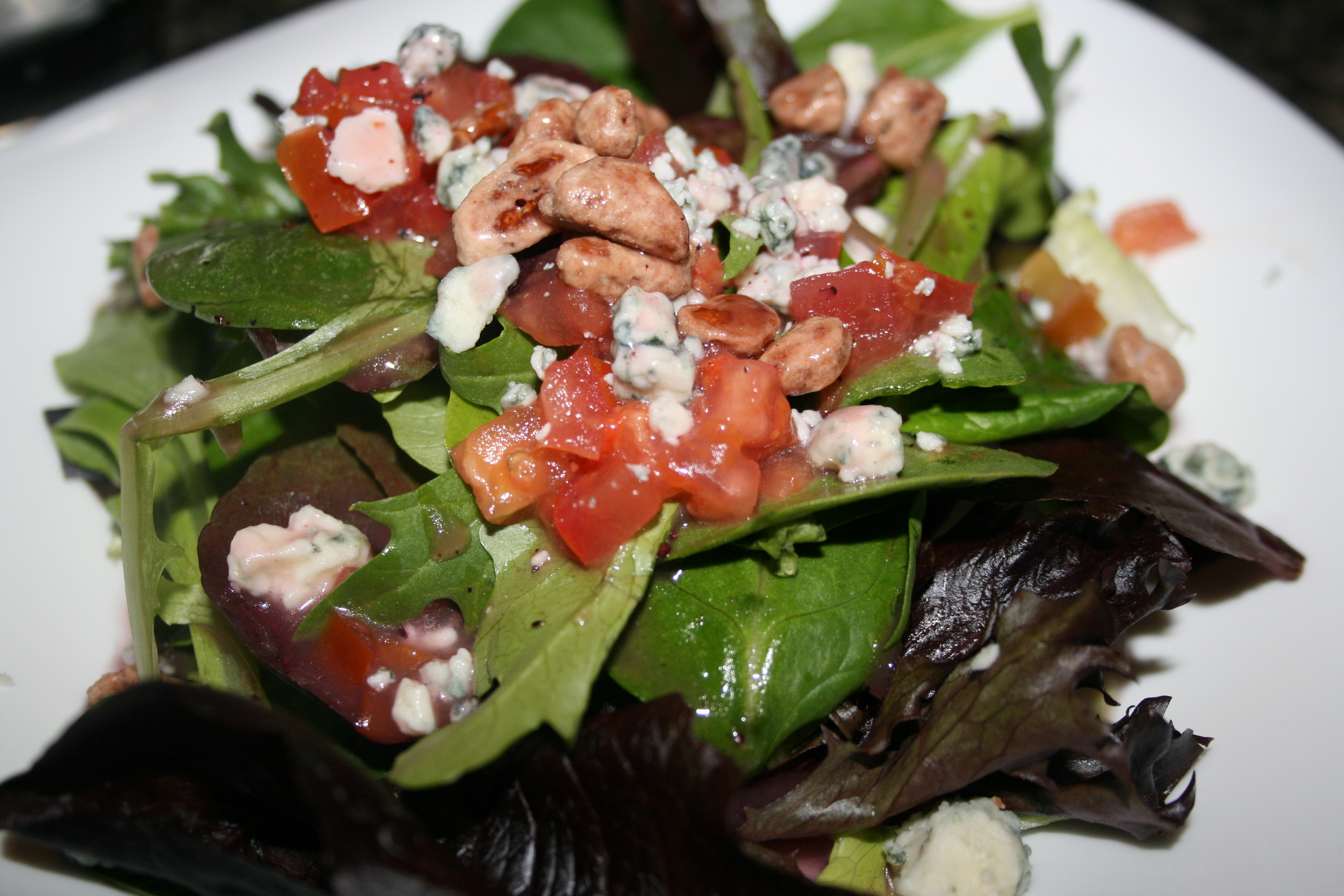After our cheese fondue we enjoyed some salads. I had the California Salad which had Mixed baby salad greens, Roma tomatoes, candied pecans and Gorgonzola cheese with Raspberry Black Walnut Vinaigrette. This salad was delicious although a bit heavy on the dressing. I would suggest asking for your dressing on the side.