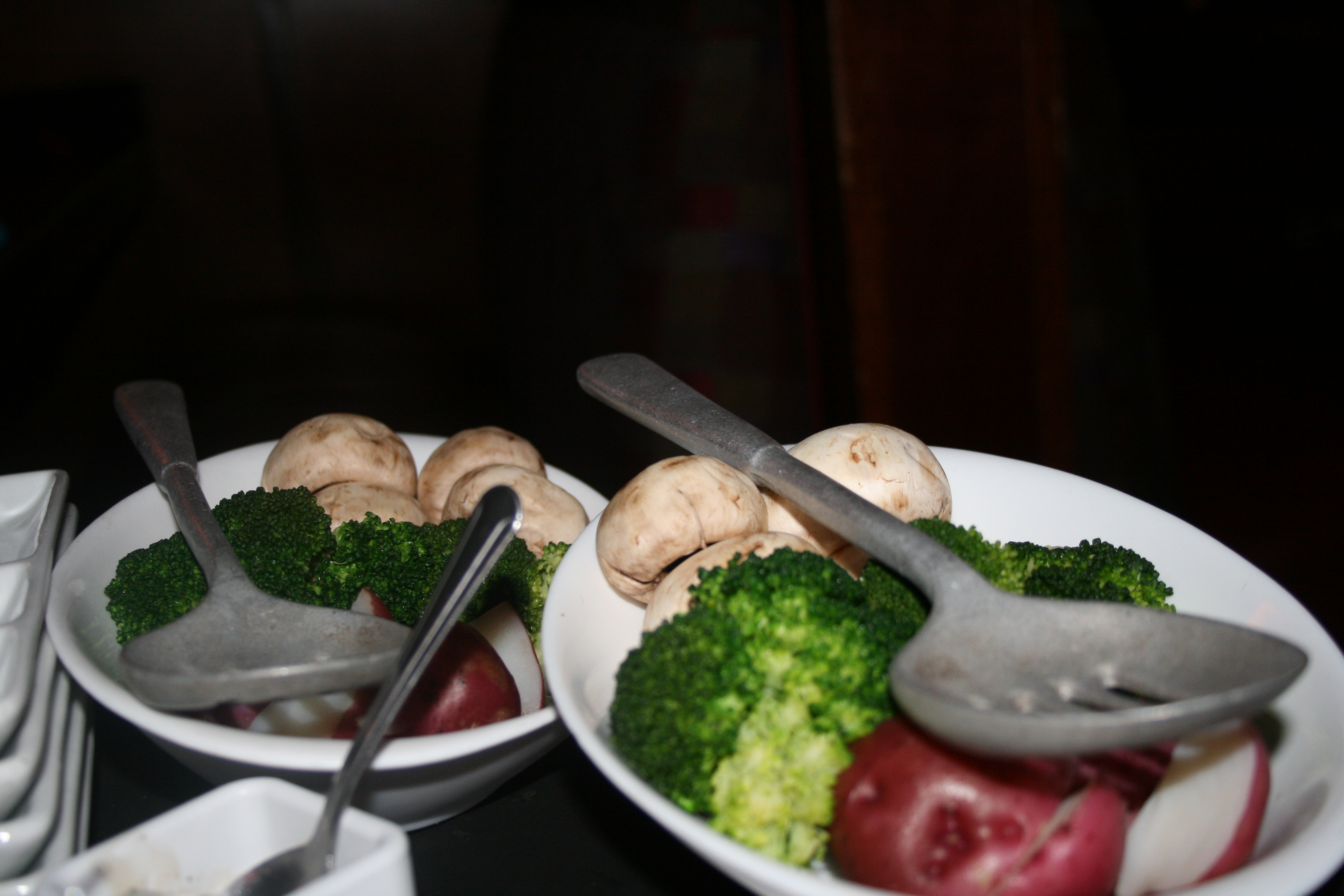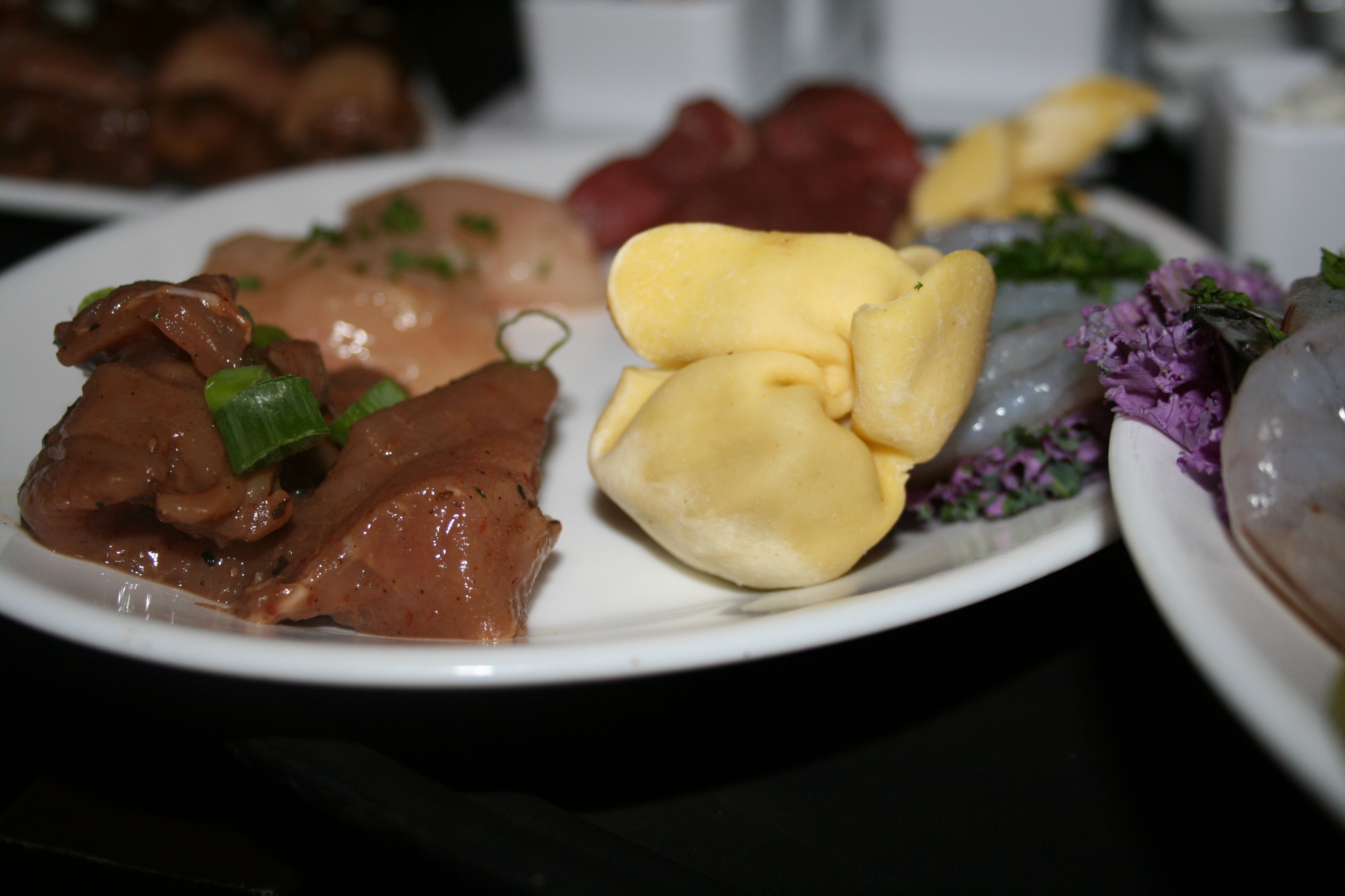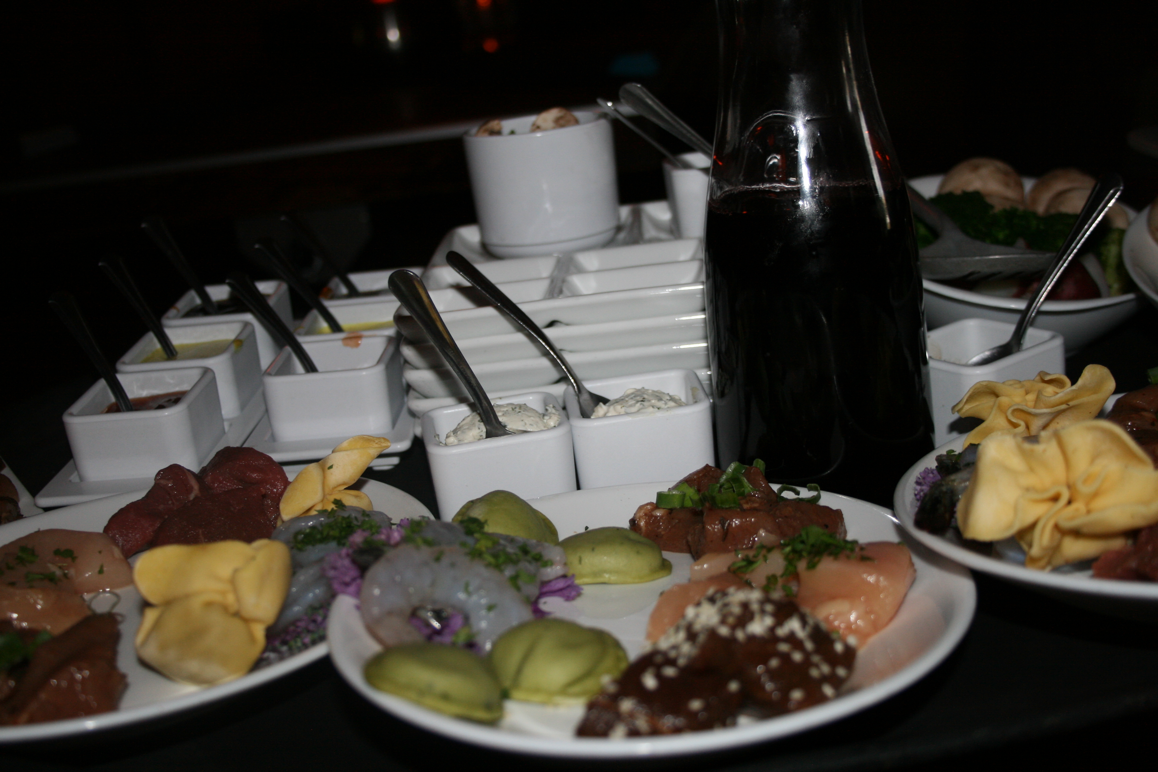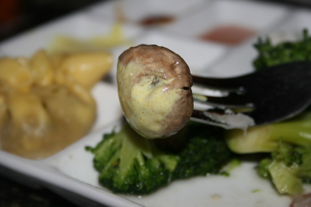 My husband and I had all-natural chicken breast, filet Mignon, citrus marinated pork and wild mushroom sacchetti. My sons had teriyaki chicken and pork and beef. We all enjoyed cooking our own food and we had a good laugh at the search and rescue spoon that Sydney showed us to fetch our vegetables.