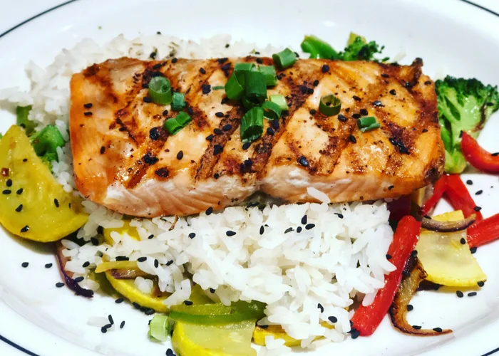 I am trying to be a little more health conscious when ordering my meals so I am very pleased to see a salmon hibachi plate on the menu. You can also choose shrimp and it comes served on a bed of rice with sautéed vegetables, and honey teriyaki glaze.