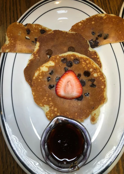 Brinner is one of our favorite things to eat and at Mimi’s Cafe kids can do just that! My daughter enjoyed the puppy pancakes with chocolate chips and strawberries.