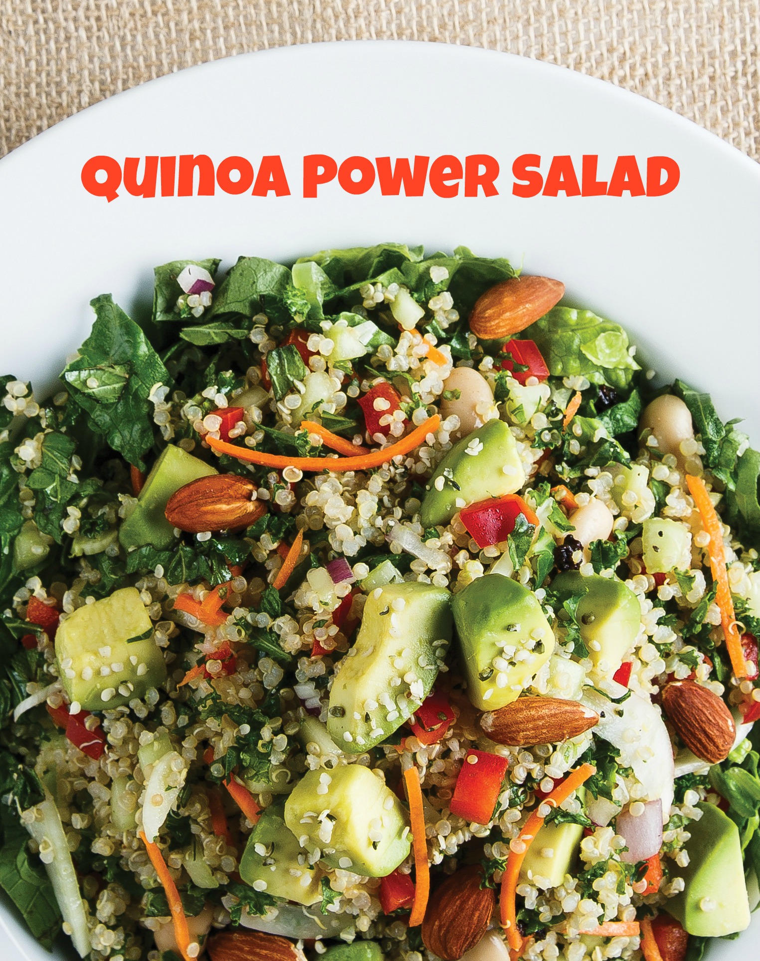 - Quinoa Power Salad $7.95: Quinoa + Kale Salad, avocado, fresh fennel, cannellini beans, romaine, carrots, almonds, currants, mint, citrus dressing, hemp seeds
