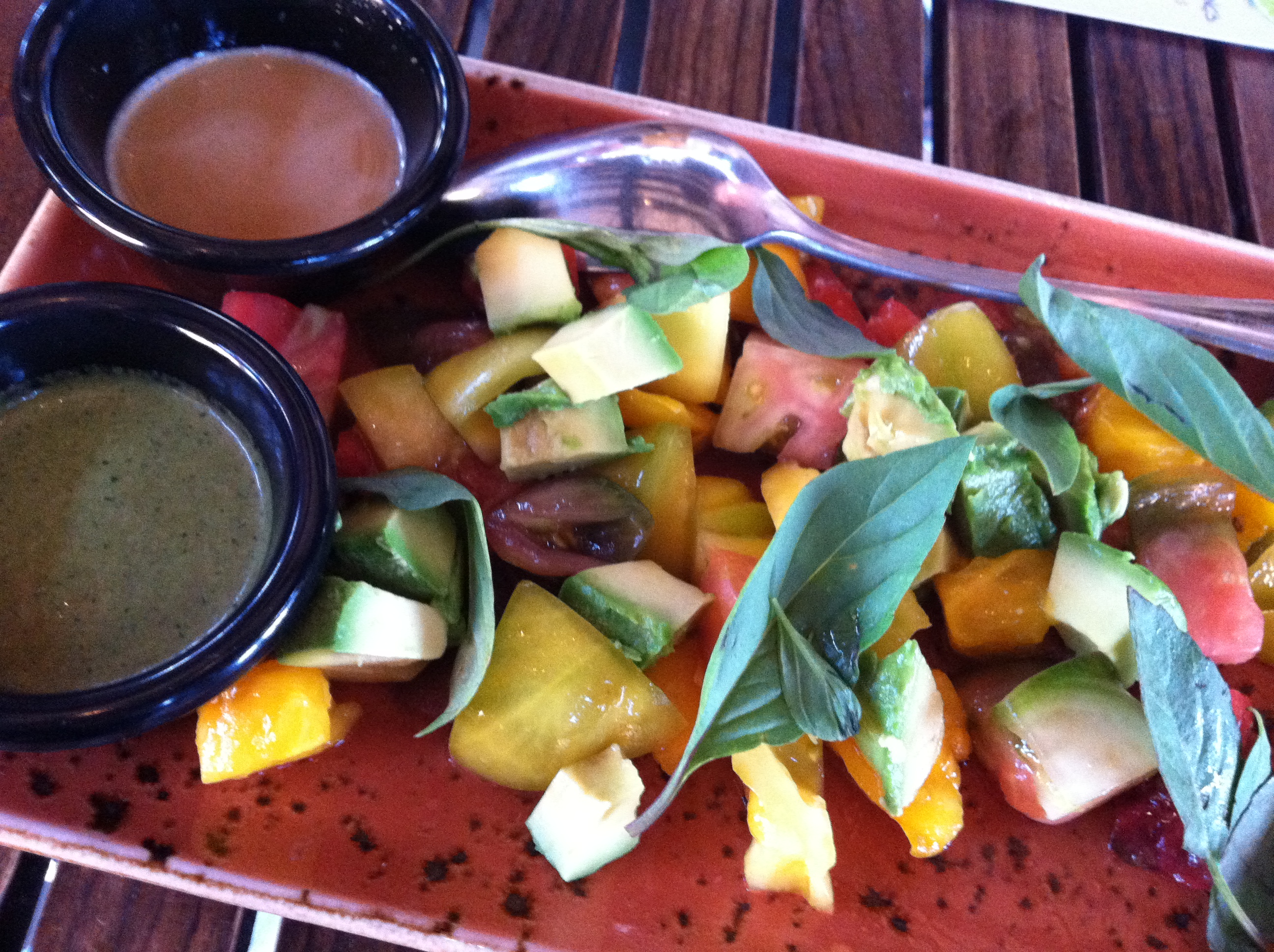 Next I tried the heirloom tomato and thai basil Salad. This was by far my favorite entree on the menu. This salad is beautiful with it’s bold colors of yellow and orange tomoatoes. It is perfectly paired with ripe avocados and basil leaves and comes with 2 dressings. A thai basil dressing and a zesty asian ponzu dressing. This dish was light so I still had room for more food.
