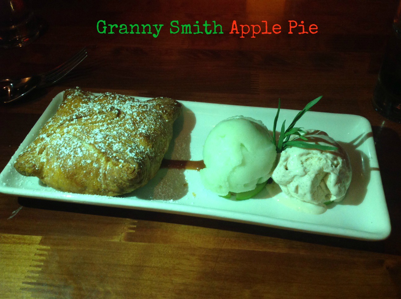 After our dinner we still had room for a piece of dessert so we tried the Granny Smith Apple Pie with a side of Vanilla Ice Cream, Apple Sorbet and Caramel Sauce. It was served hot and it just melted in our mouths. Next time I will ask to have the caramel sauce drizzled on top.