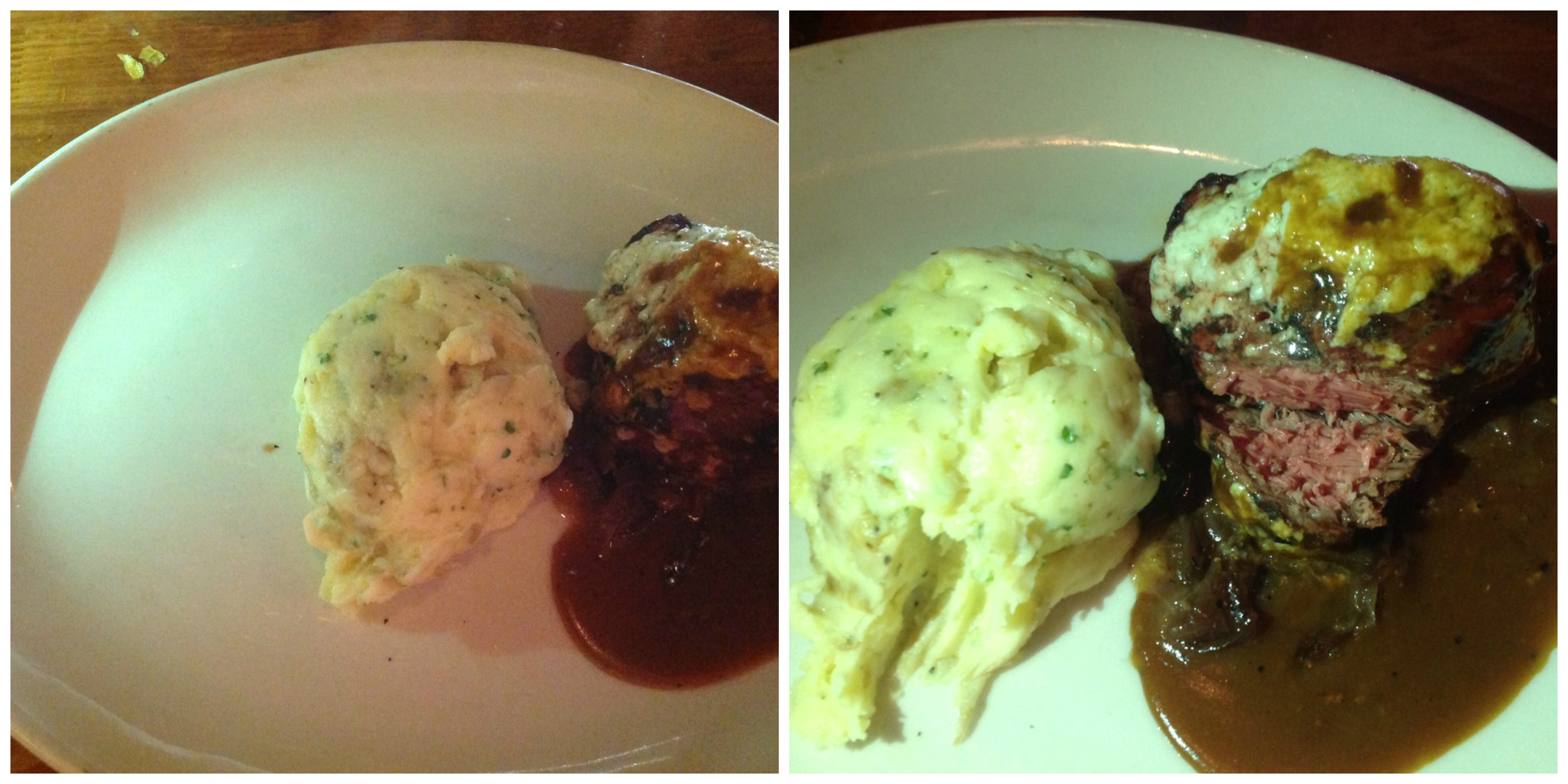 My partner Erin had the Prime Rib. Her dish was filled out much more and had a nice array of different choices. The Au Jus sauce was nice and warm and her asparagus was seasoned and cooked to just the right tenderness. She ordered her meat medium and it was pink just the way she likes it.