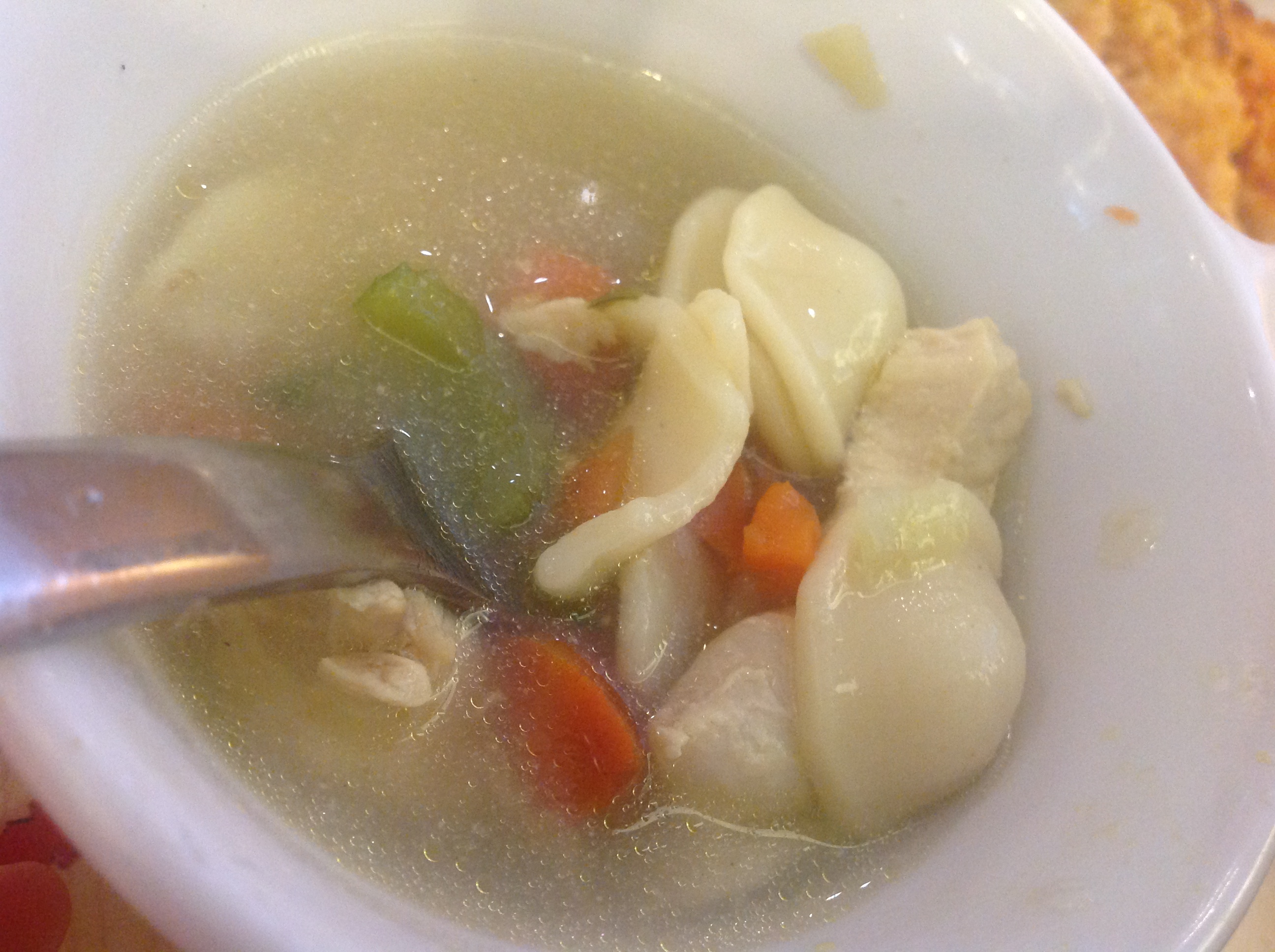 The soups are plentiful and include up to eight soup selections. Thier signature soup is their chicken noodle soup with huge chunks of chicken and giant thick noodles. On the day I went they had something new I had not tried before – Chicken Orecchiette. It was delicious.