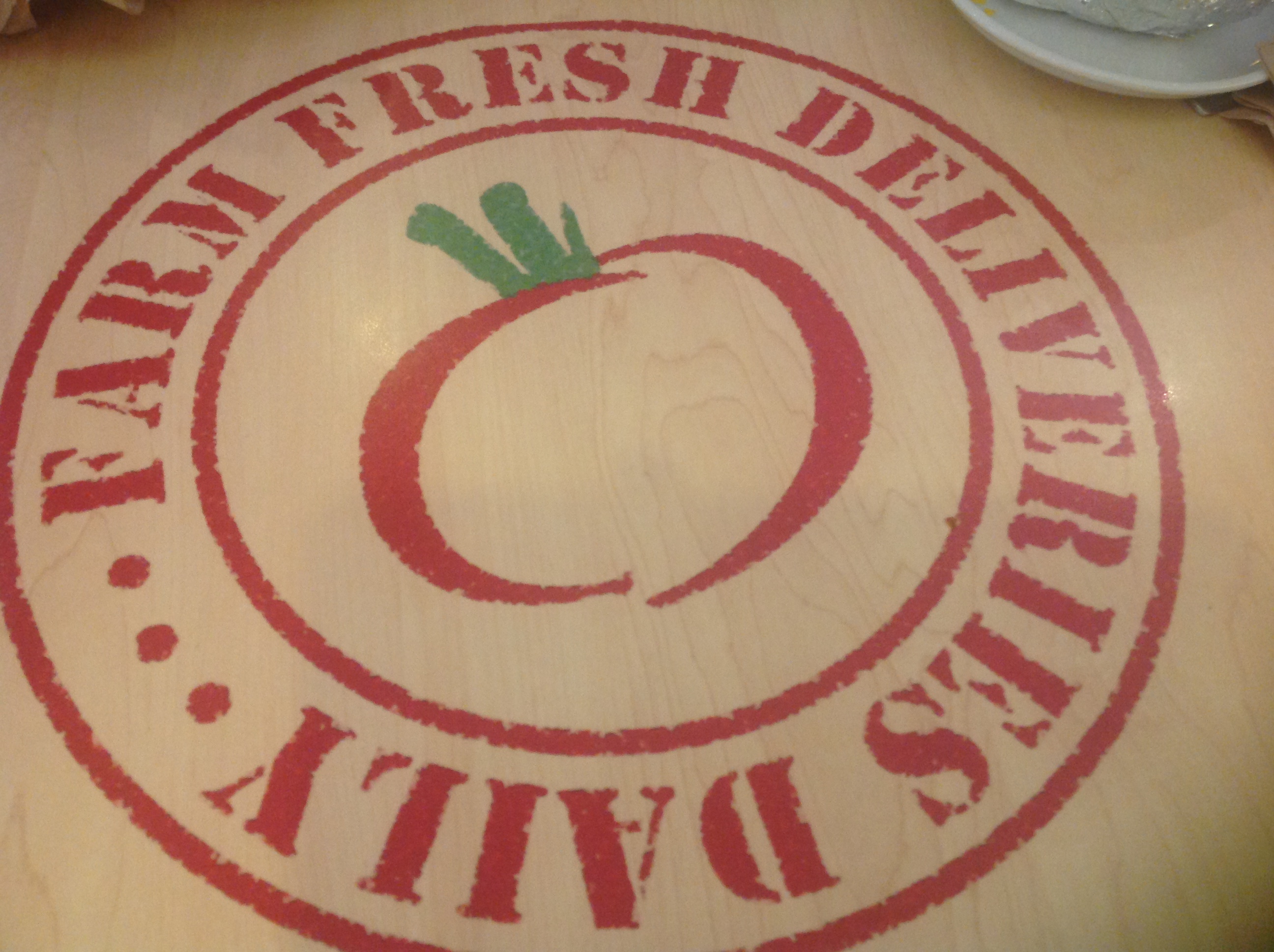Souplantation recently underwent a remodel of several of it’s Orange County locations. The restaurants now resemble a contemporary farmer’s market kind of feel with new hardwood floors, new paint, new artwork, updated unifrforms for the staff and an upgrade to the dining room with an emphasis on fresh produce, which is piled high on a cart near the entrance.