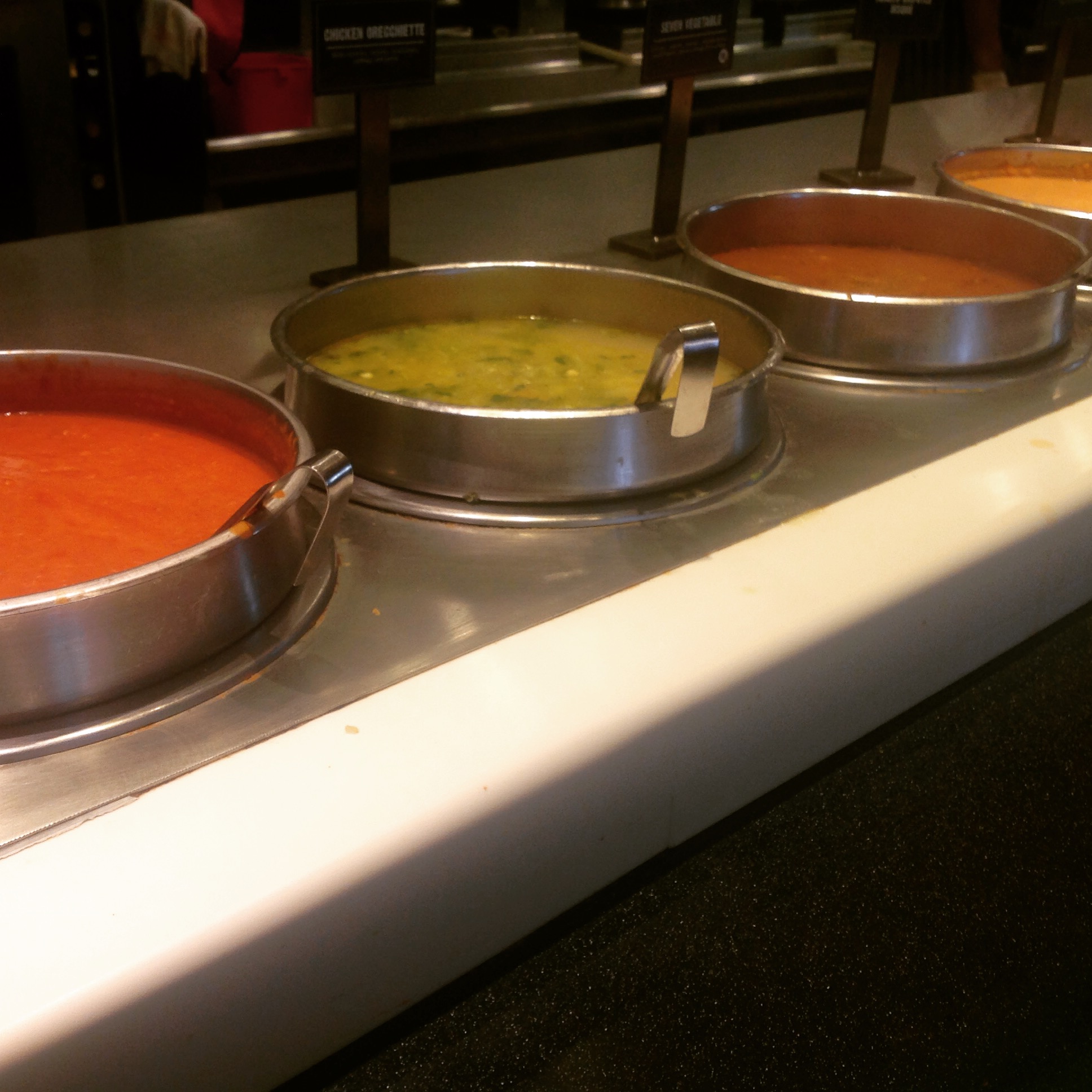 Last week I dined at the Irvine Souplantation and was amazed at how incredibly busy this particular location was. I usually dine at the Laguna Niguel location where you just walk right up , pay and get your food. The Irvine location had a line out the door. I have never seen such a buzz in a Souplantation like that.