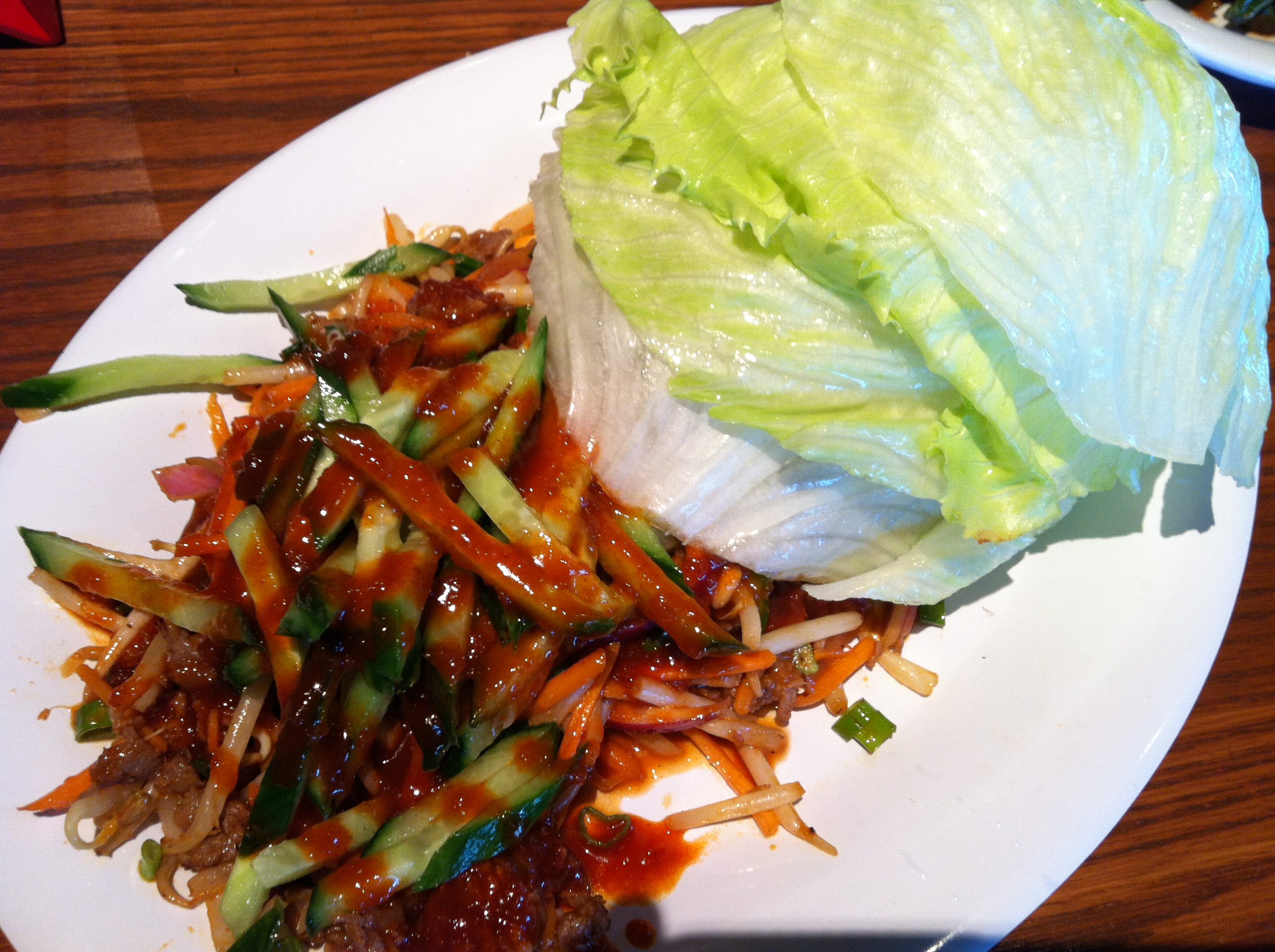 I also wanted to try one of their new lettuce wraps so I opted for the Korean Steak lettuce wrap. They are served in crisp cups of iceberg lettuce these wraps and are much different than the traditional chicken lettuce wrap. It had wok-seared marinated steak tossed with fresh carrots, bean sprouts, red onions, scallions, cucumbers, toasted sesame seeds, and was drizzled with a Korean red chile sauce.I found them to be a little on the wet side but they were still still very flavorful.