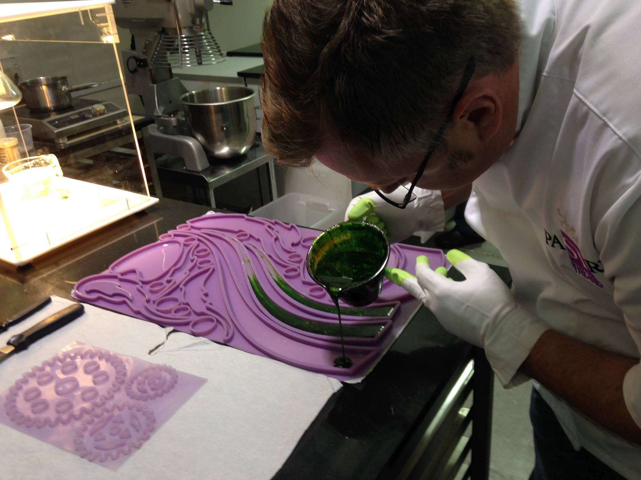Near the back, there was a sugar artist at work, both pouring into molds and pulling sugar to create a sculpture.