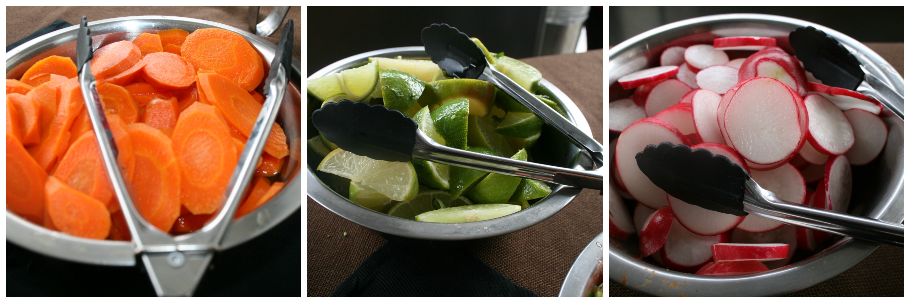 Below is the Condiments for the Tacos. The pickled carrots were delicious. They were soaked in a vinegar solution and the radishes were nice and crispy.