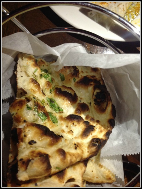 After watching the cook bake the fresh naan in the tandoor, we had the choice of two varieties (butter, and garlic). Both were very good on their own, and of course helped serve as a dipping piece for the sauces in the next servings.