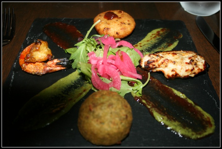 Dario knew we would love to sample a variety of options, and our appetizer plate include the grilled prawns (firm and delicious), grilled potato cake, spinach and potato dumplings, and tandoori tikka (tasty grilled chicken). Our favorites were the shrimp and spinach dumplings, and this was a nice start to the many food options we were starting to experience.