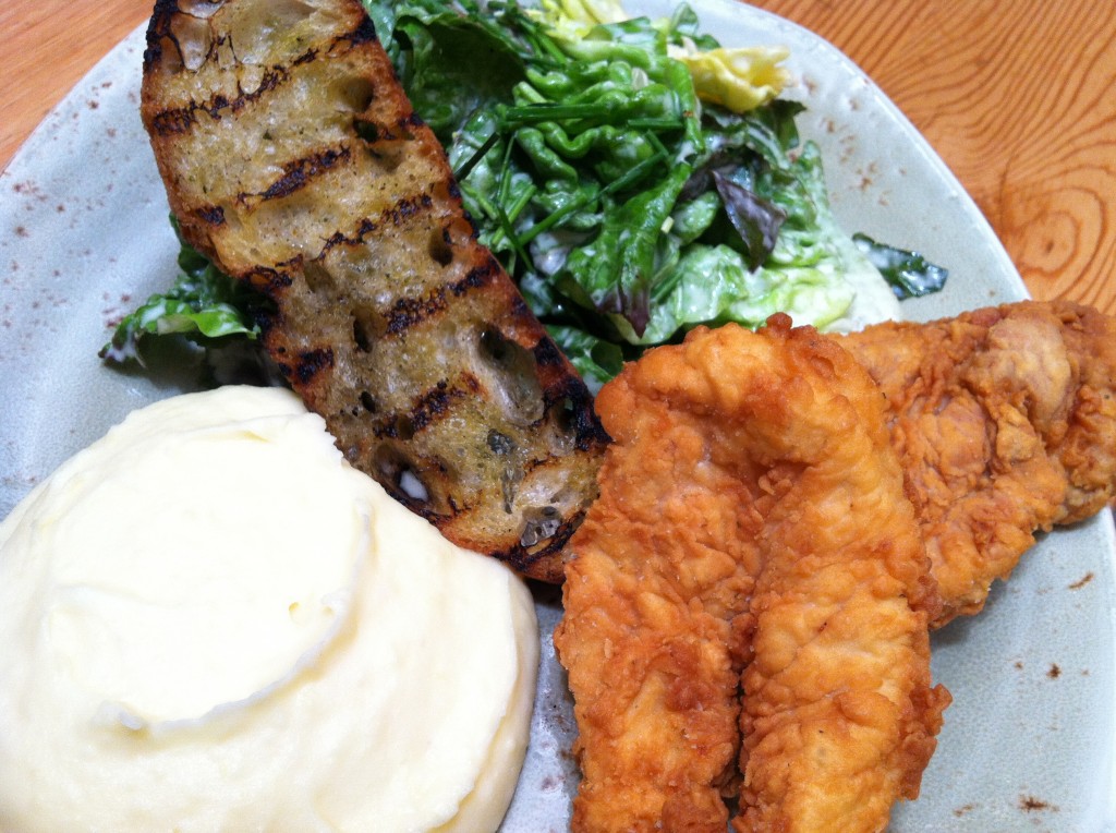 I ordered the fried Chicken entree and the Roasted Roma Tomato Soup. This was the best fried chicken I have ever had. If you look up the word tender in the dictionary here is what you will find: Tend-der (adjective): softordelicateinsubstance;nothardortough. My chicken was exactly that. It was moist and not the least bit greasy. I enjoyed the subtle hint of buttermilk , Rosemary and Thyme. The potatoes were pillowy and soft and the Crostini was a welcome addition to my butter lettuce salad. The dressing on my salad was not too heavy and all the flavors really came together nicely.
