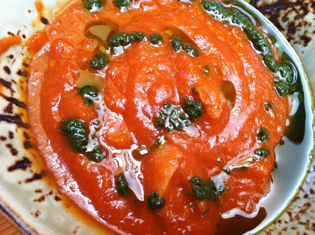 My soup was also quite tasty. You can see the basil oil and the cibbatta croutons. This soup really warmed me up. Even the bowl it was served it was appealing.