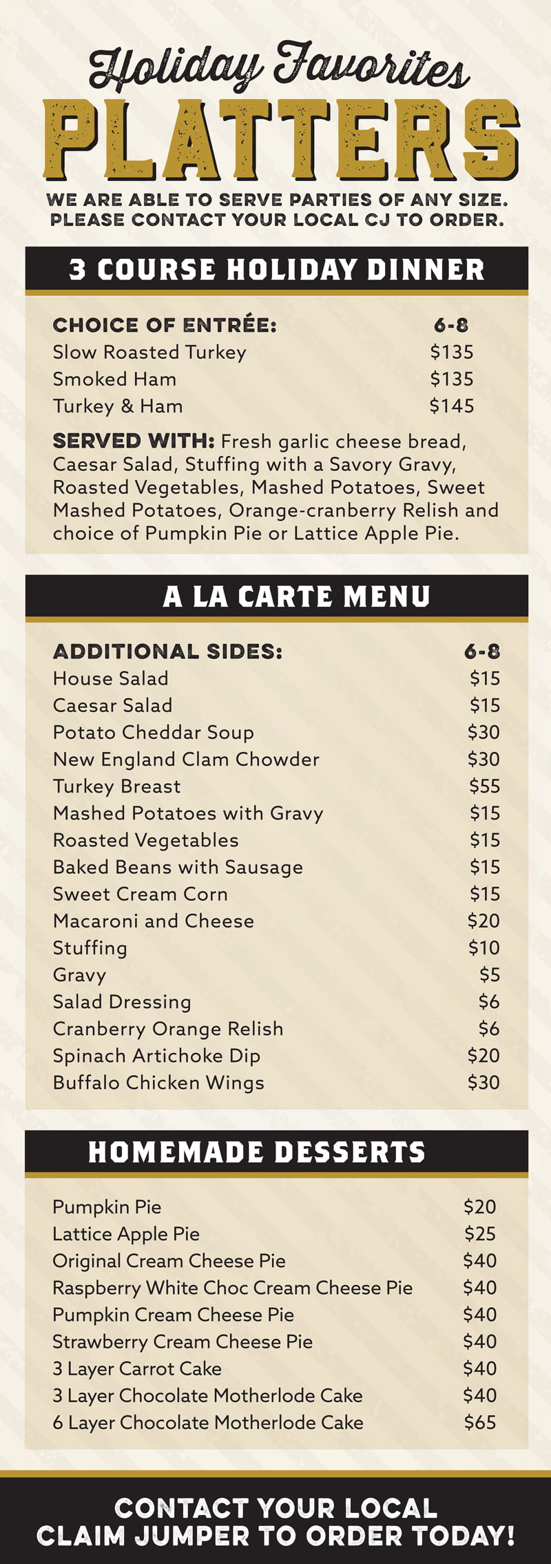 HOLIDAY FULL FEASTS $109.99 + tax & tin deposit