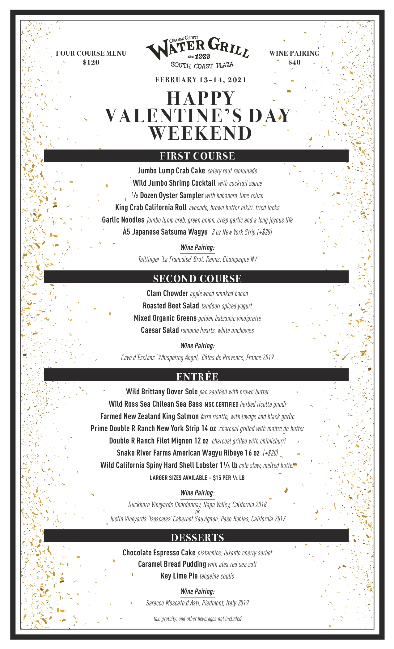 Valentine’s reservations: please call 714.437.5252 (à la carte menu)