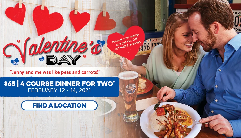 Bubba Gump Shrimp Co. is offering a romantic meal without the stress of cleaning up afterwards!