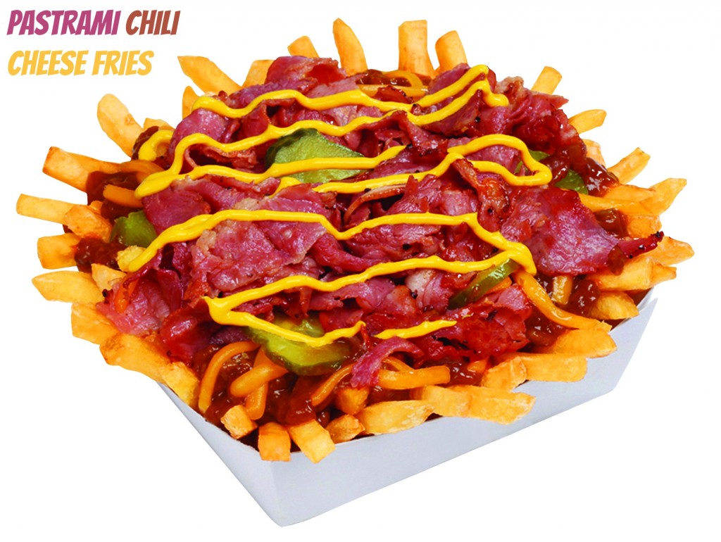 These fries come Piled high with Wienerschnitzel’s secret-recipe chili and freshly grated cheese, then topped with signature pastrami, pickles and a mustard drizzle. These meaty fries take a Der classic to a whole new level.